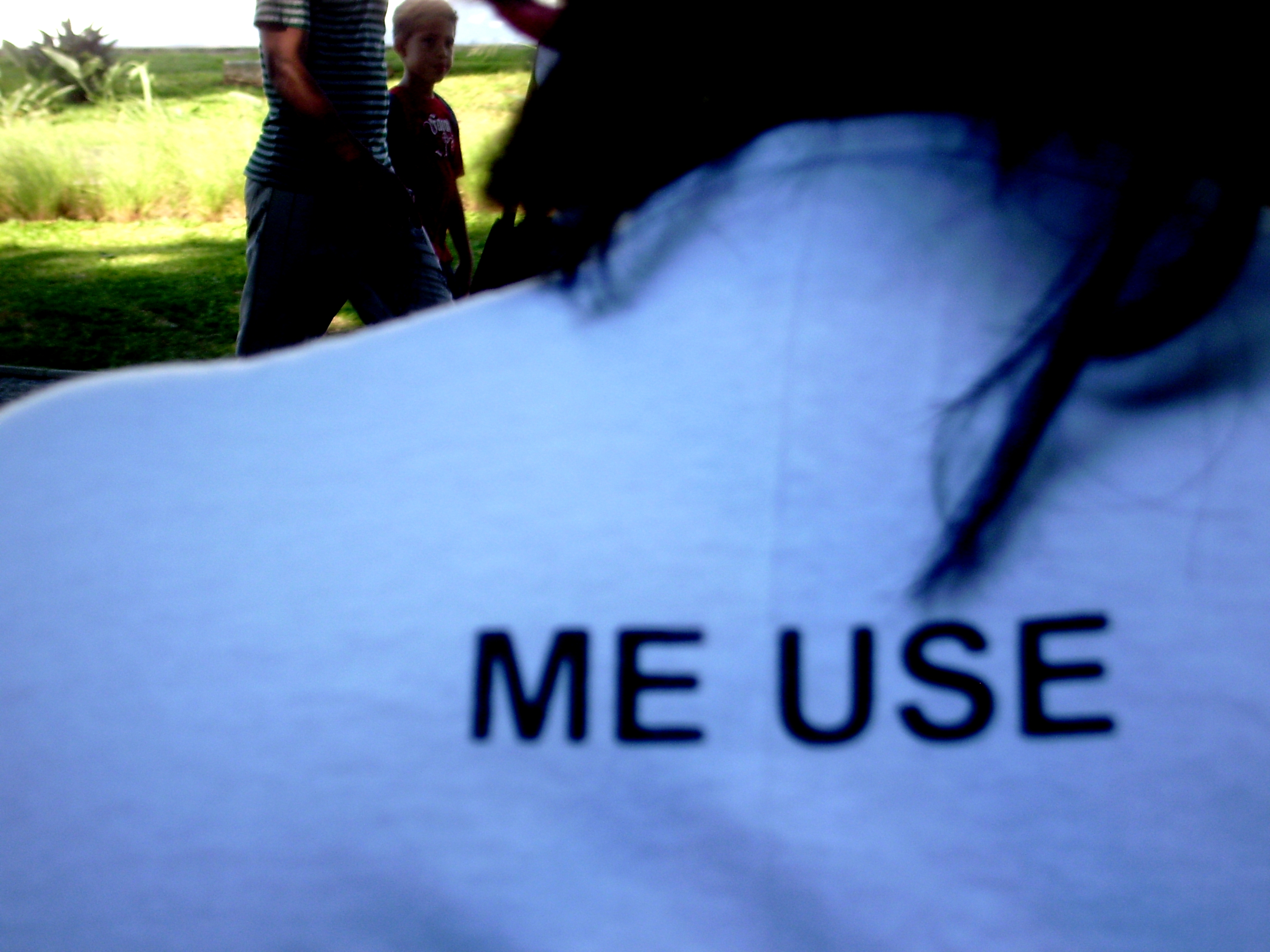 O projeto “Me Use” propôs uma ação performática em grupo, realizada em local público, para discutir a ligação entre a imagem do indivíduo com o próprio indivíduo dentro da cultura de massa.