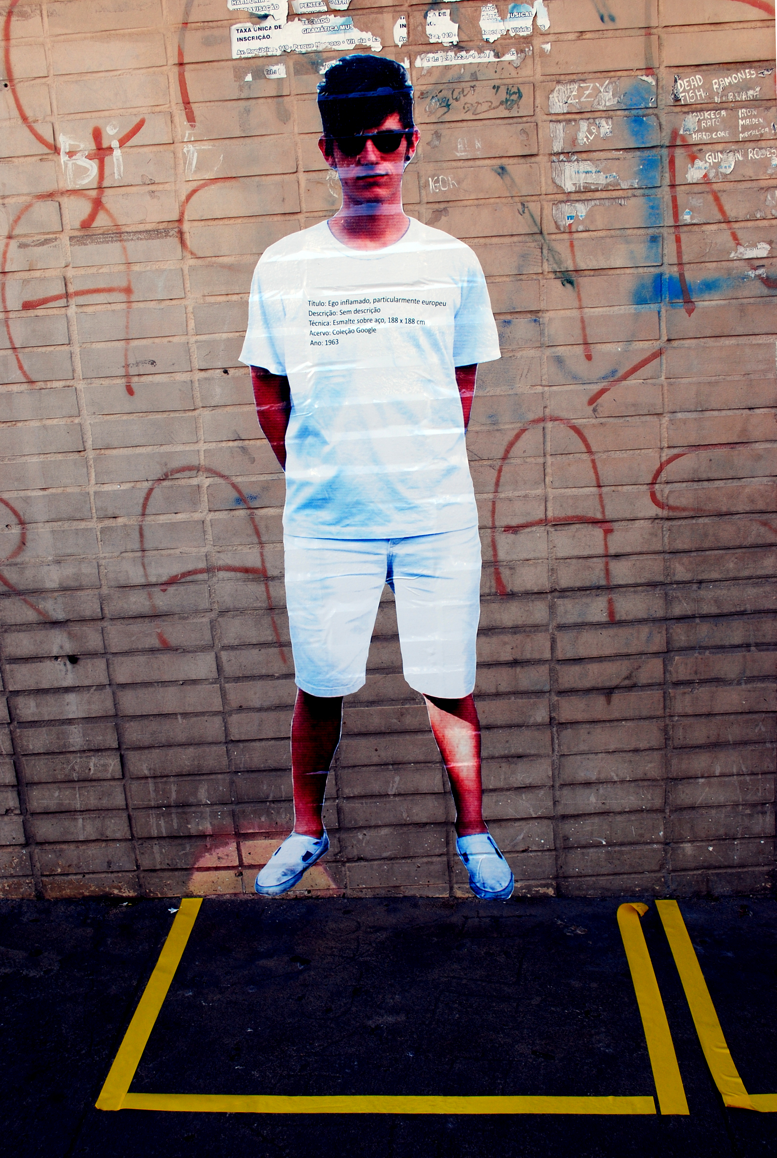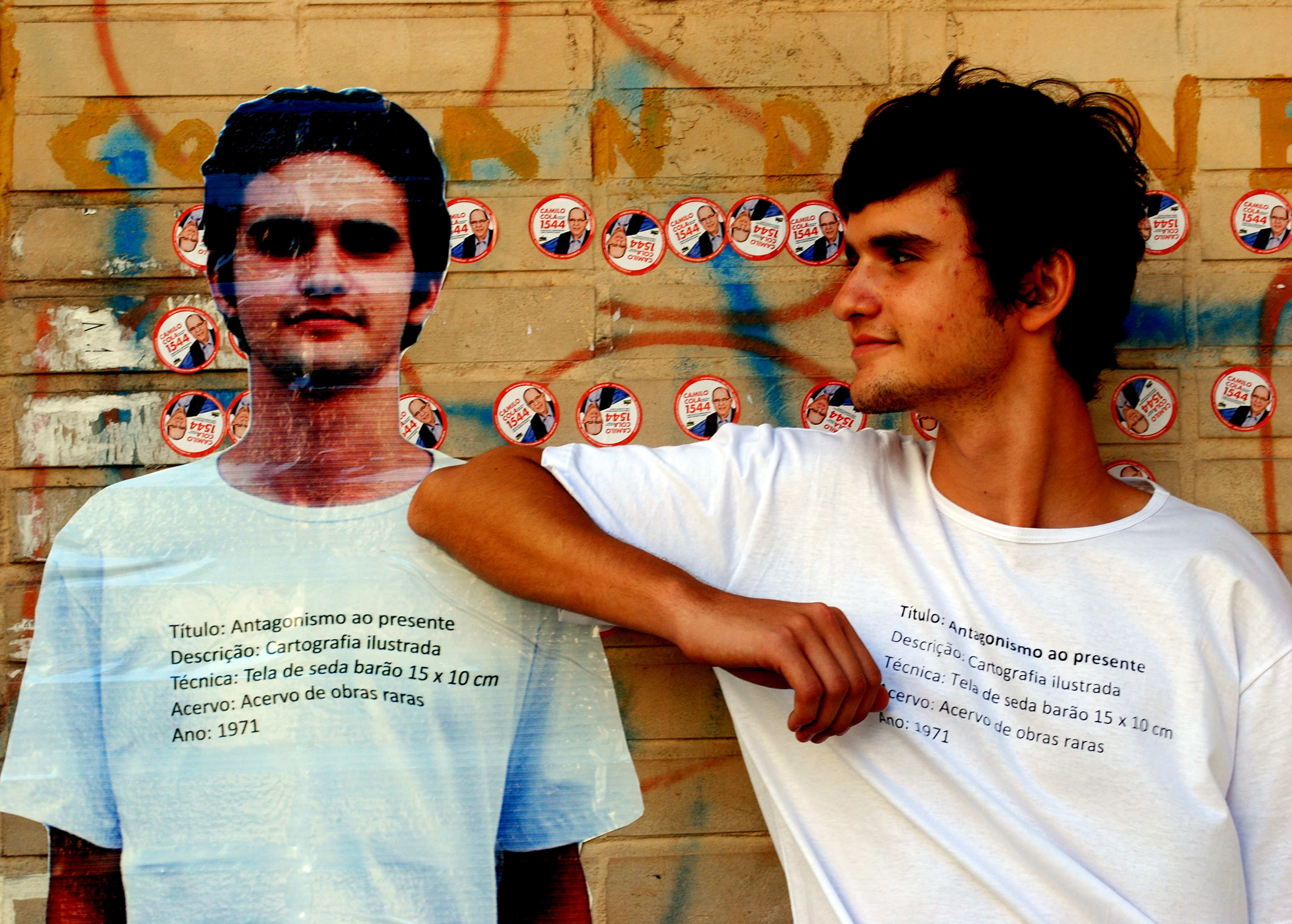 Os espaços públicos mostram-se como o avesso do “cubo branco” da galeria de arte e ainda assim certamente como espaços expositivos. Cada “performer” trajava uma camiseta onde se lia o título que lhe foi dado (na tentativa de sintetizar os múltiplos aspectos culturais que lhe formam, assim como o título aferido a uma obra de arte pode direcionar a leitura sobre a mesma). Pouco abaixo de título, em letras menores, encontravam-se as características técnicas do objeto (performer). Exemplo de título: