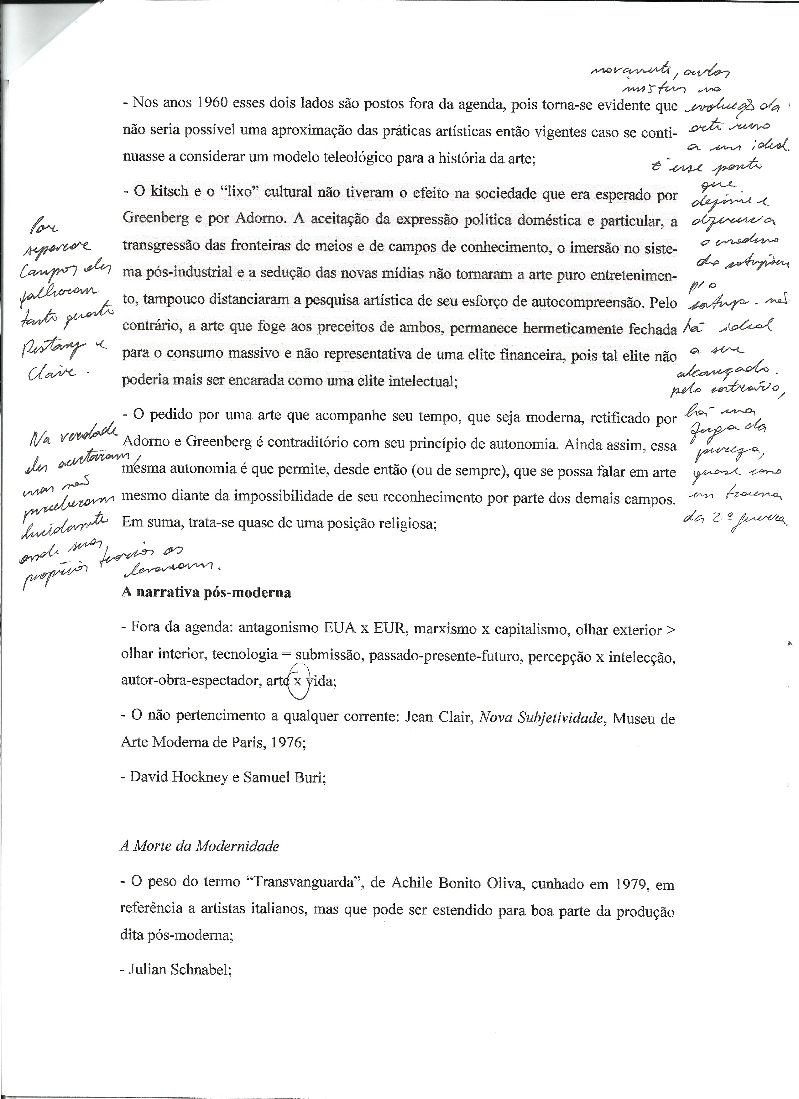 Notas sobre Jimenez, Marc. “La Querelle de l´art contemporain. Paris : Gallimard, 2005. L `Arte Moderne e l´art contemporain: « Une question de chronologie », « Les années 60 : L´explosion artistique “ e.», p. 65 a 101.