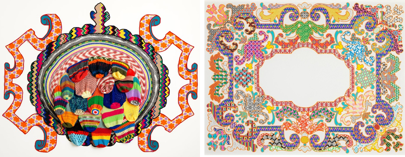 A artista Carolina Ponte, em sua exposição “Tecer Mundos”, na Galeria Zipper (São Paulo, 2011), utiliza padrões ornamentais egípcios, orientais, latino-americanos para criar mandalas coloridas feitas de linha. Constrói brasões, bandeiras e outros objetos com motivos florais, marítimos, volutas e outras formas típicas de determinados estilos, como o Rococó. O ornamento entra em sua produção como uma forma a ser reconstruída e ressignificada.