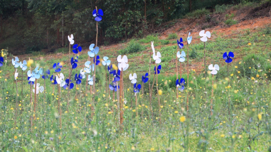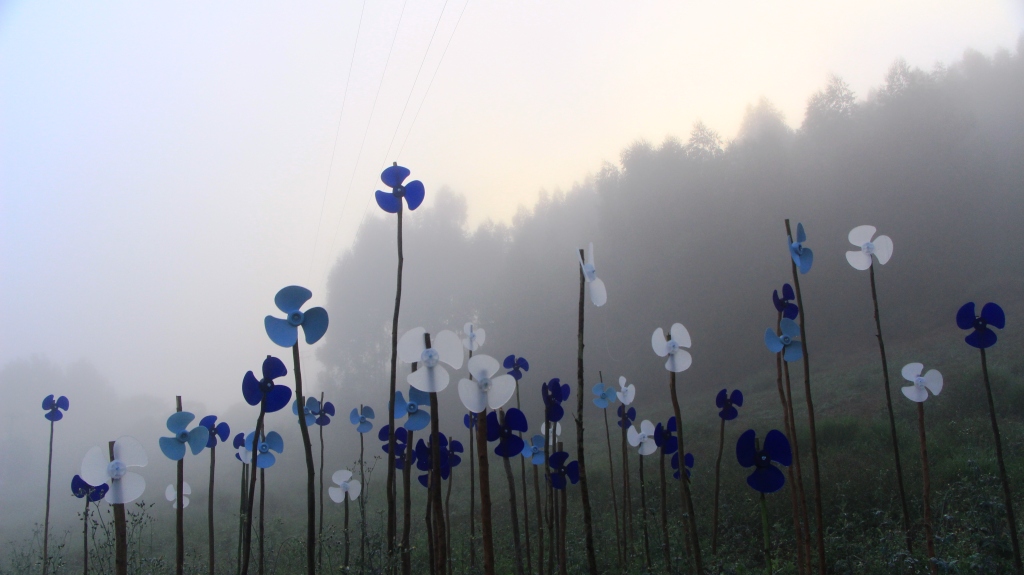 A função de celebração é claramente percebida na instalação “Ventiladores-Cataventos: Homenagem ao Ornamento-Degenerado”, do COLETIVOmonográfico (Sítio Força Verde, Domingos Martins, ES, 2013). A proposta insere-se nas ações do projeto “Ínfimos Corriqueiros – Pormenores Possessivos” (ÍC-PP), de autoria do COLETIVOmonográfico[6] com apoio da Secretaria de Estado da Cultura do Espírito Santo (Secult), através da Bolsa Ateliê em Artes Visuais (2012).