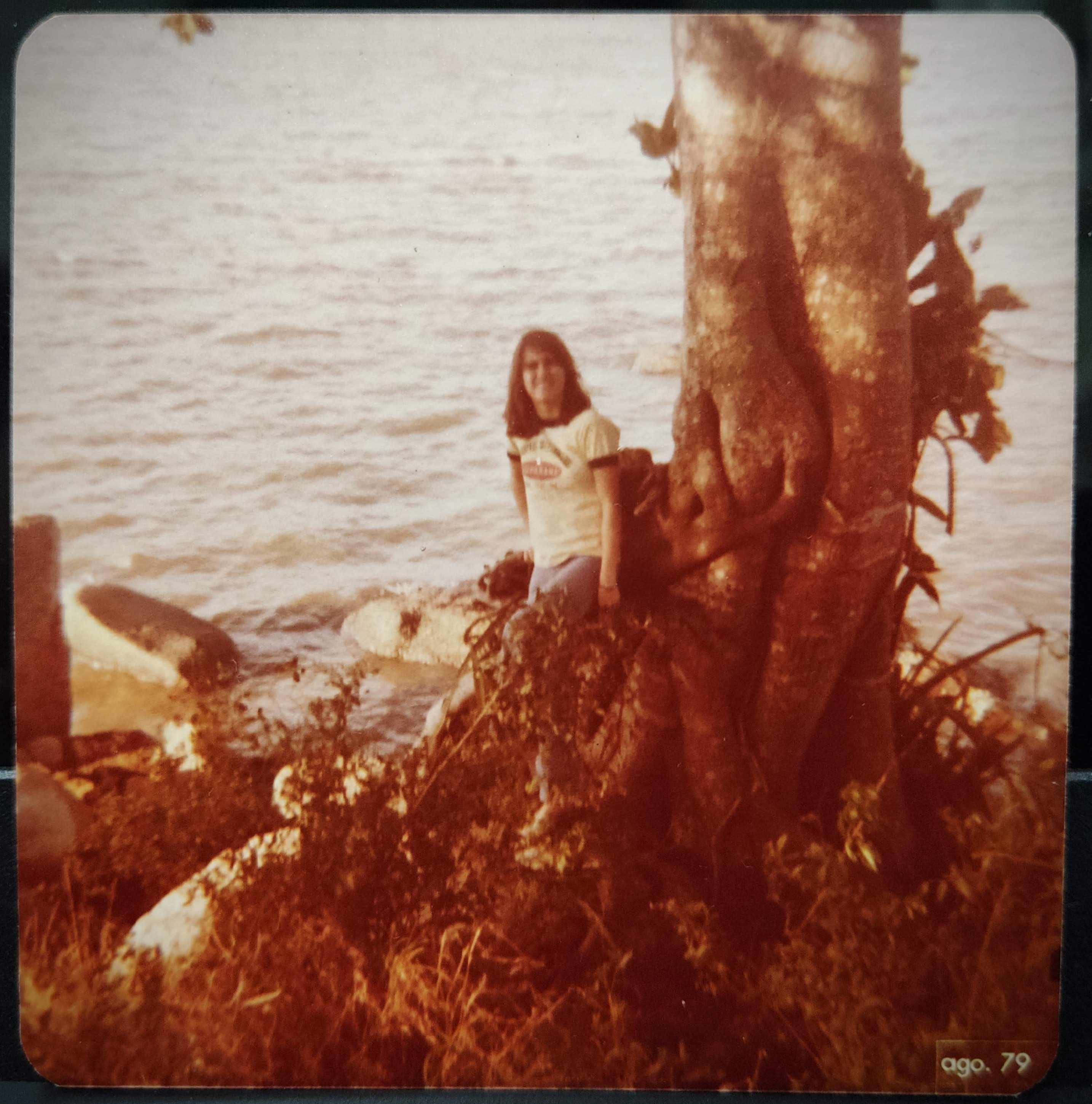 Quando penso sobre essas marcas de vivência estética que ficam na gente, lembro-me de um tronco em formato de gente-bicho, que encontrei quando criança. Em uma viagem para Linhares, lugar que eu nasci, perto da Lagoa Juraparanã, nós posamos ao lado de um barranco, parados junto daquele tronco, papai, eu, meu irmão, primos e o tio. Ali eu reconheci uma produção de arte.