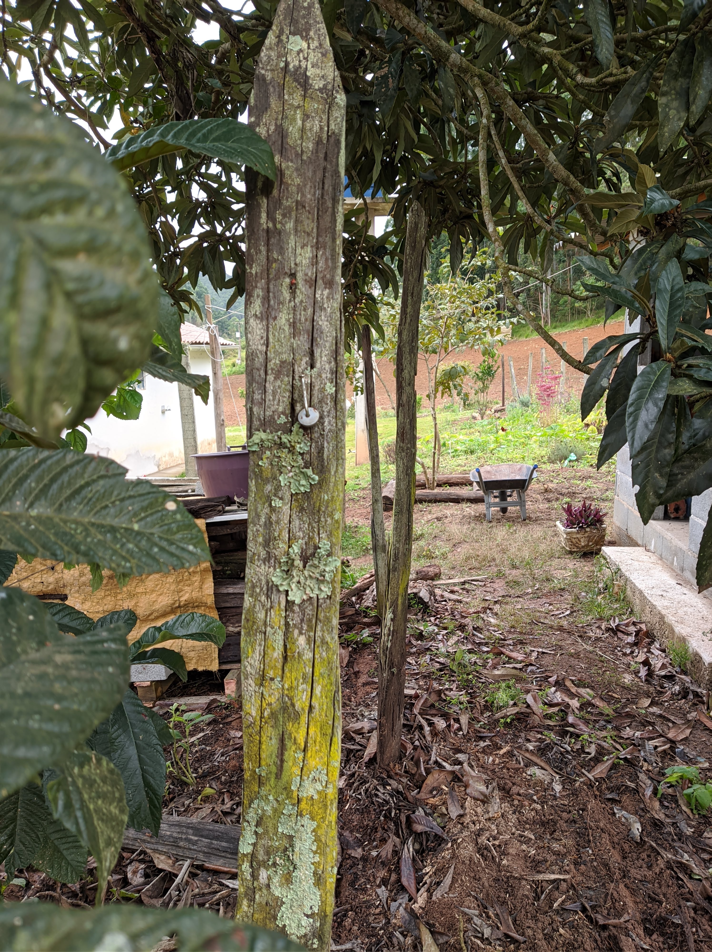 É o tronco que lasca, que trinca, que carrega 30 anos ou mais de memórias, que vira cerca, vira canteiro, vira lenha para fogueira de São João quando já não consegue parar de pé, é esse tronco, que me constrói como ser consciente da proteção ambiental. É esse tronco, hoje protegido, que me lembra das queimadas da Amazônia, ou não tão distante, a queimada do vizinho, que por mais que eu avise, alerte, não compreende que precisa proteger a camada mais externa do solo. Ou que não entende que aquilo que fizemos no passado, não estava certo, não deu certo e não continuará dando certo.