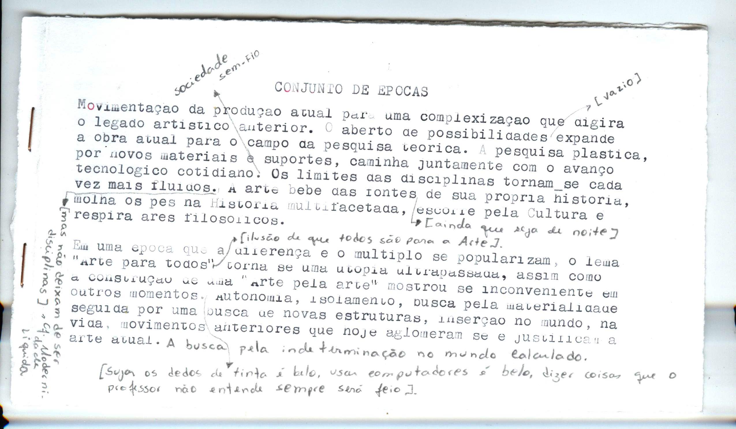 Conjunto de Épocas. Apontamentos datilografados 30/06/2012. Palavras e frases entre colchetes são acréscimos manuscritos em revisão no mesmo dia.