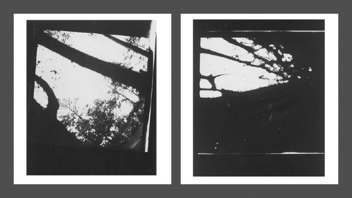 Fig. 1 e 2. Anônimo (membro do Sonderkommando de Auschwitz), Mulheres conduzidas para a câmar de gás do crematório v de Auschwitz, Agosto de 1944. Oswiecim, Museu Estadual de Auschwitz-Birkenau. Na esquerda, negativo n.282, na direita, negativo n.283.