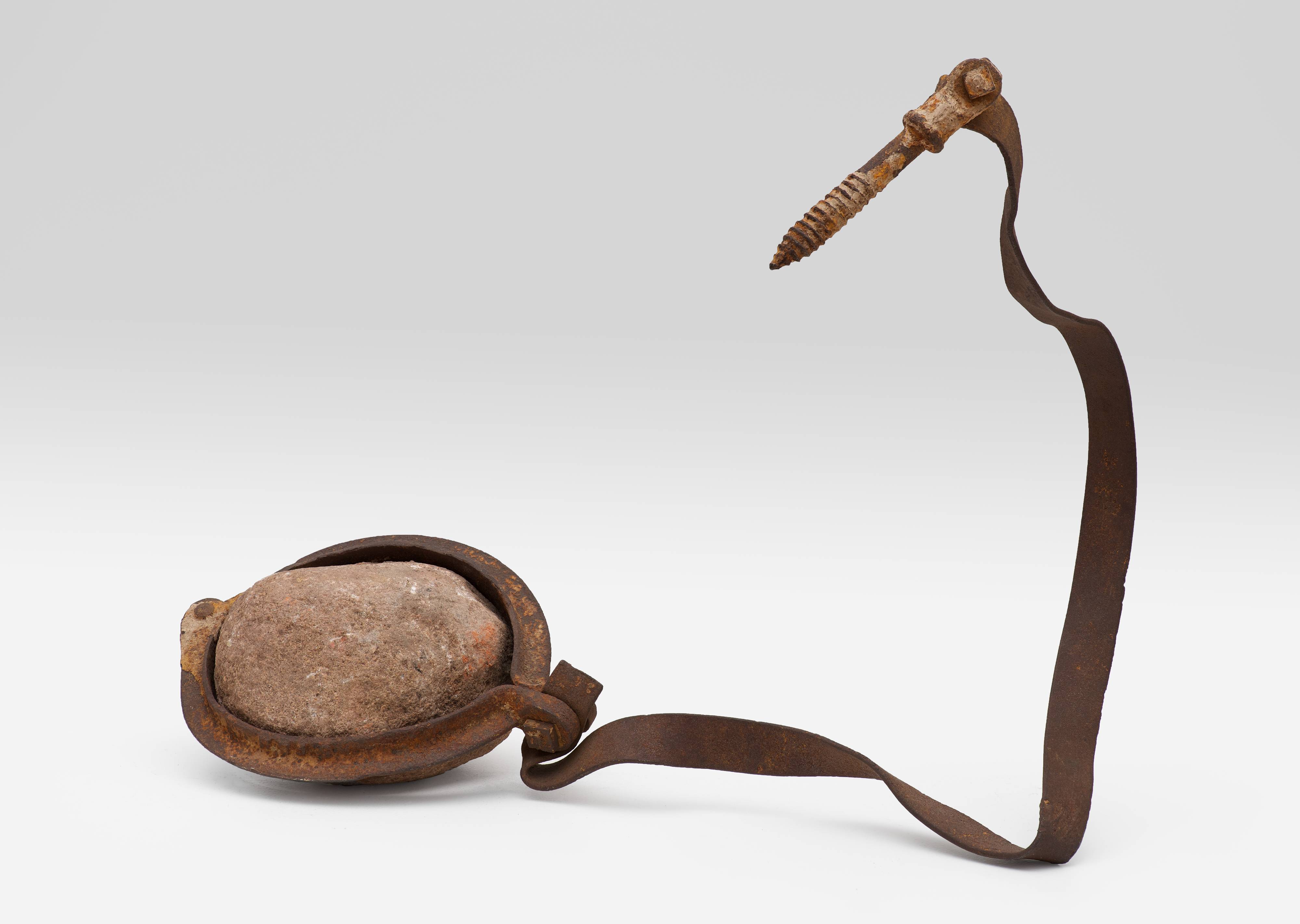 Imagem de capa. Robert Rauschenberg, “Sem título (elemento escultural)”. Junção de aço e pedra. 1953. Pequeno círculo de metal com uma pedra arredondada encrustada, ligada a uma haste de metal torta, dobrada para cima, que termina em um parafuso. Todos os elementos de metal estão enferrujados.