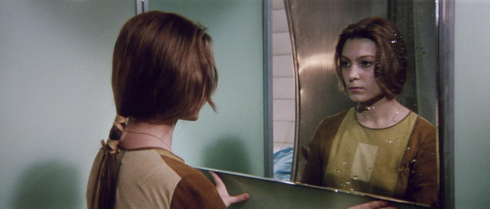 Imagem de capa. Captura de tela do filme Solaris, de Andrei Tarkovski. 1972. Natalya Bondarchuk, como a personagem Khari, olha para a própria imagem no espelho.