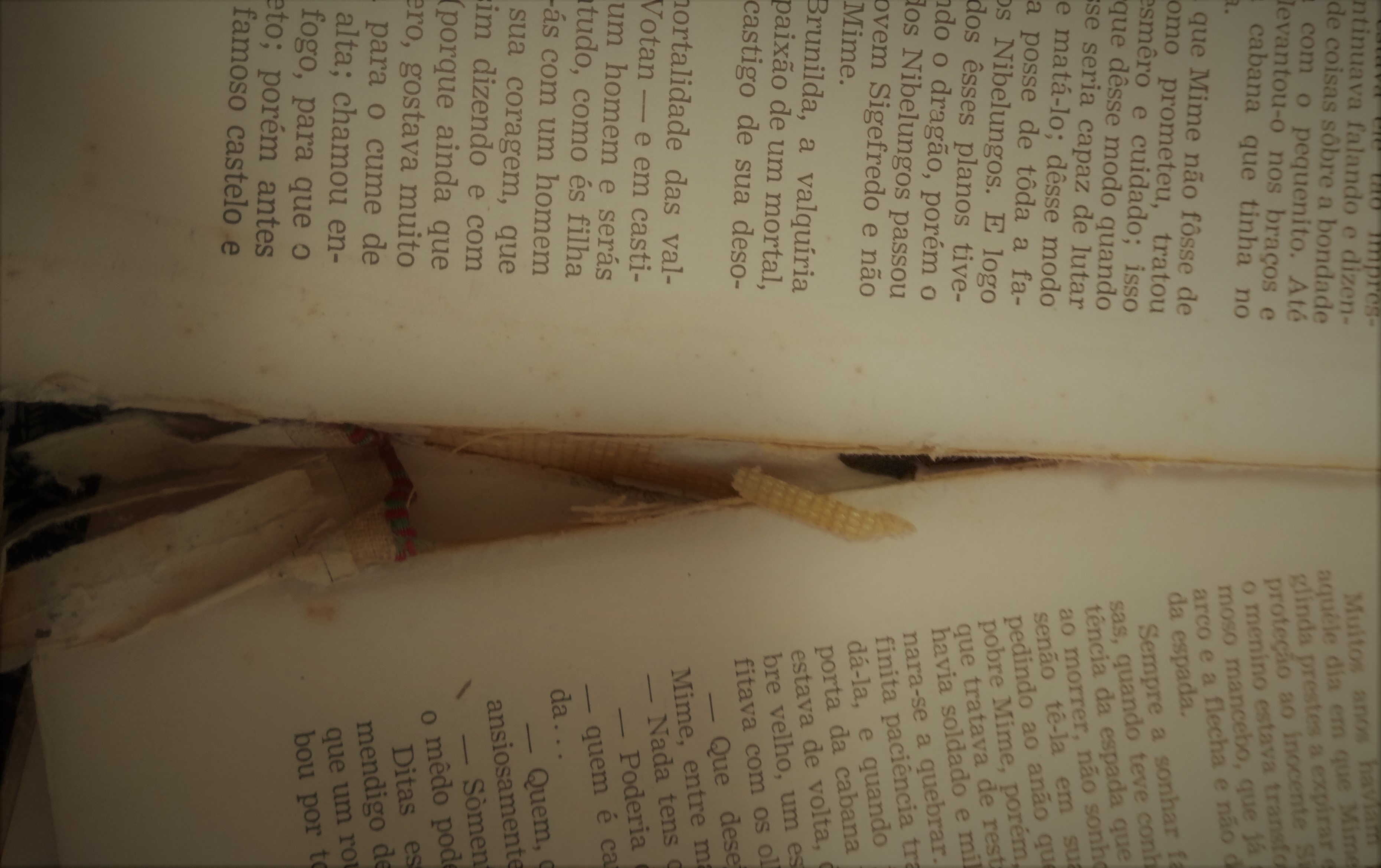 Imagem de capa. Recorte do vídeo “Nori comeu a arte”, de Fabiana Pedroni, 2018. Disponpivel em: https://vimeo.com/306815015. Fotografia. Duas páginas de um livro antigo são separadas uma da outra.
